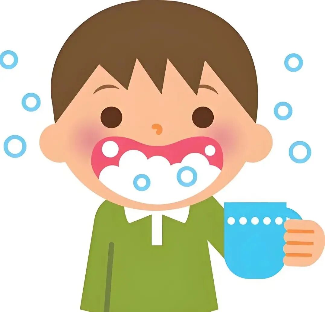 ◉ 漱口小旋风:饭后用清水漱口,能冲走大部分食物残渣。6岁以上小朋友可用儿童漱口水。