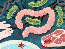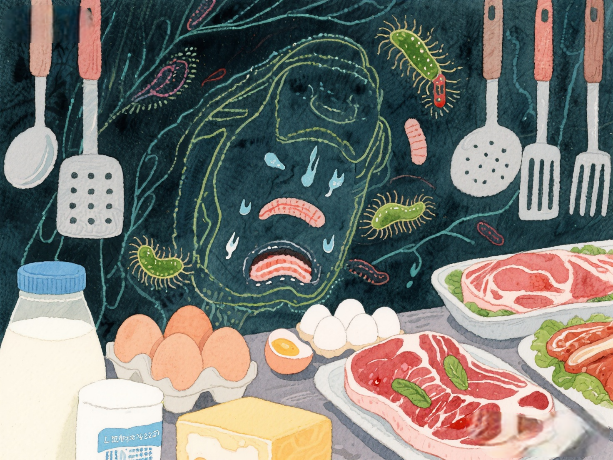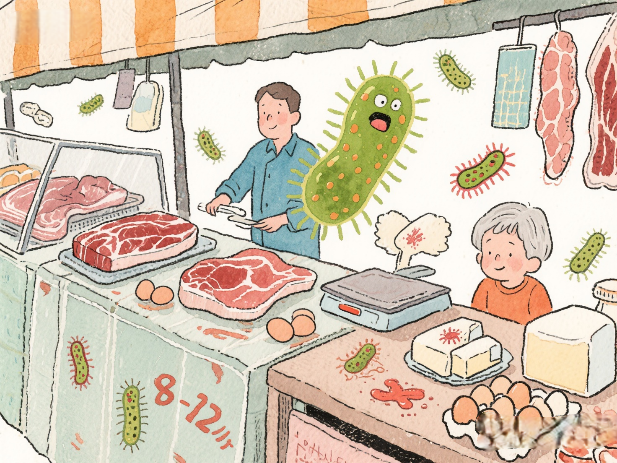 生肉、鸡蛋、奶制品是它的老巢。如果摊贩处理生熟食的器具没有分开,或者食物加热不足,它就会趁机而入。感染后8-72小时,它会让你腹痛、腹泻、发烧,尤其对小朋友和老年人更危险。