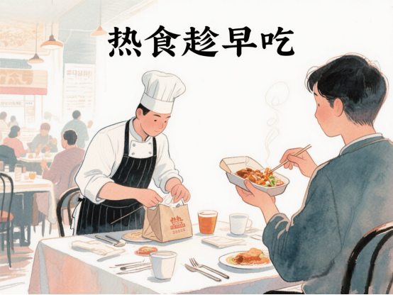 购买热食后尽快食用,不要让食物在低温环境中放太久。时间越长,细菌繁殖的机会就越多。