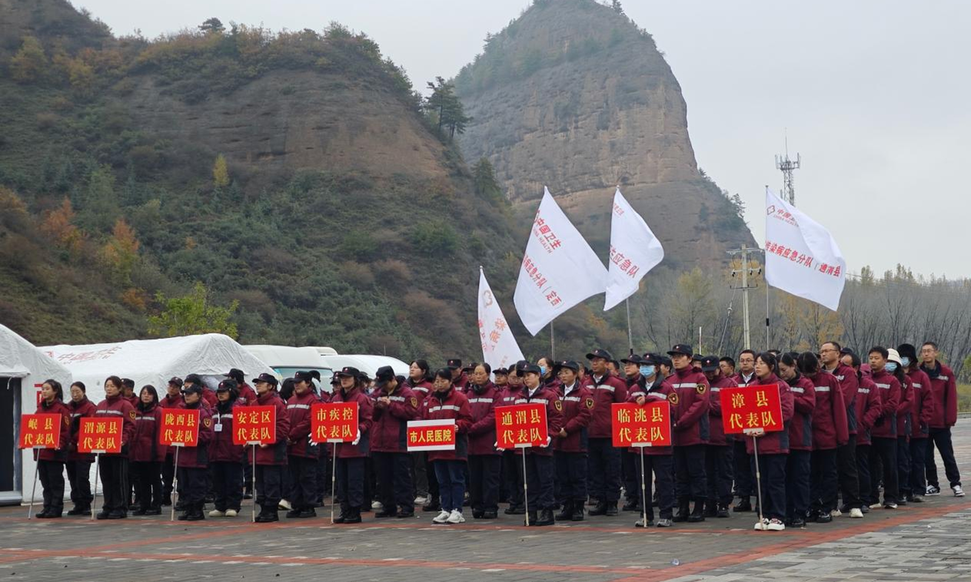 十月的渭源,烟雨蒙蒙,10月22日,市卫生健康委、市疾控中心、渭源县卫生健康局在渭源县联合举办了全市2025年自然灾害卫生应急救援技能大赛暨急性传染病应急处置实战演练。市疾控中心、市人民医院、各县区疾控中心的9支应急队伍集结在首阳山脚下,围绕应急队伍集结、应急装备展示、营地搭建、现场急救、灾后心理干预、急性传染病流调溯源、疫情防控措施落实及后勤保障等多个项目开展急性传染病疫情应急处置演练和自然灾害卫生应急救援竞赛,整个演练过程覆盖了自然灾害卫生应急救援和急性传染病疫情处置的全流程、各环节。