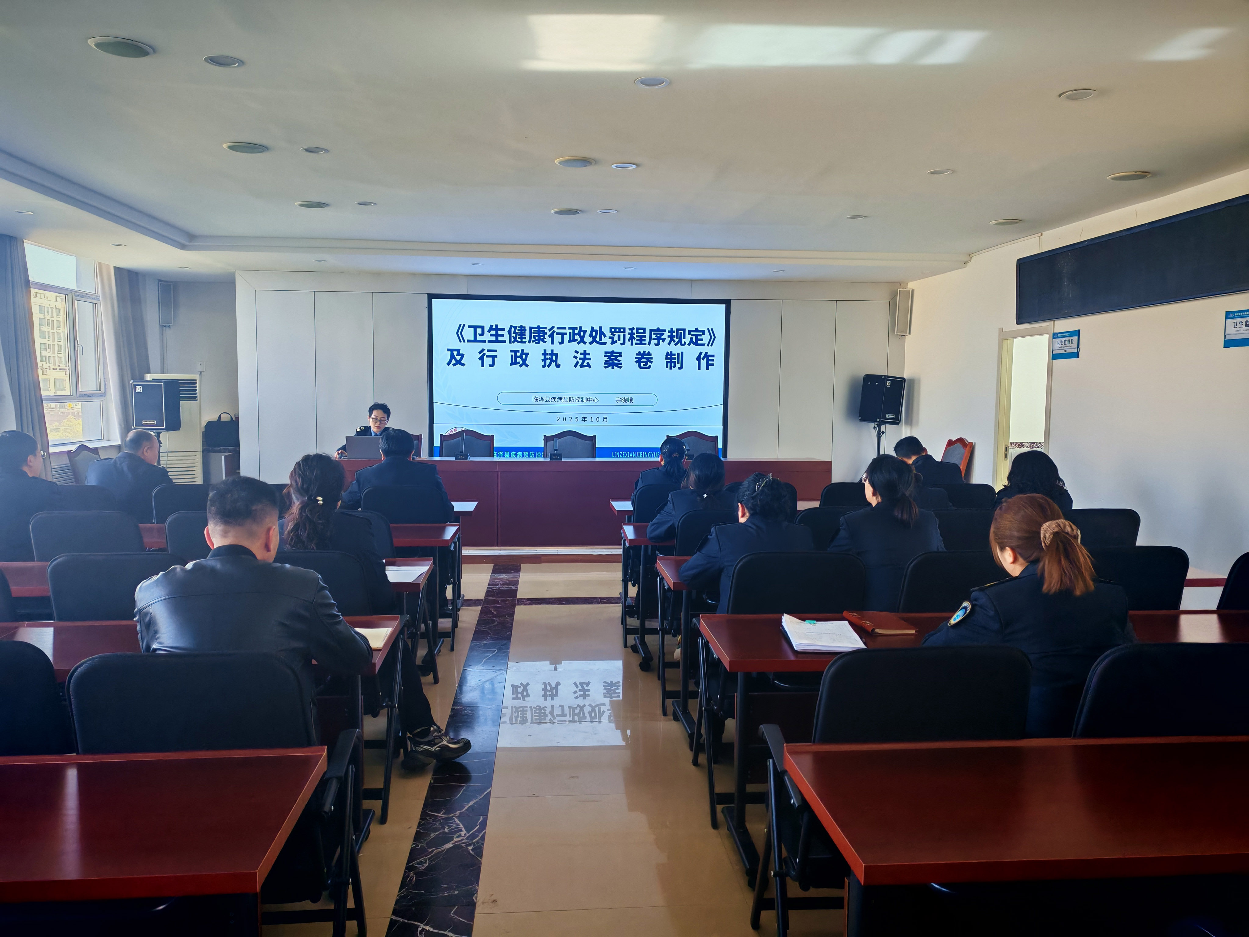 为全面提升全县卫生健康系统综合服务能力与法律素养,进一步加强卫生监督队伍建设,2025年10月27日至28日,临泽县疾病预防控制中心(卫生监督所)在县卫生健康局四楼会议室成功举办了全县卫生行业监督管理专项培训班。来自县疾控中心的全体卫生监督执法人员及各镇卫生院的卫生监督协管员50余人参加了此次培训。