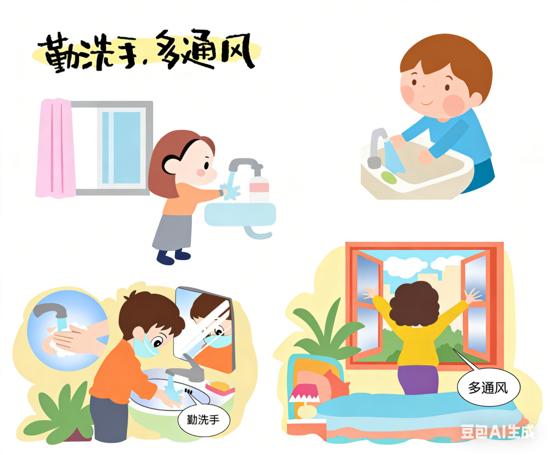 ◈ 勤洗手、多通风、戴口罩,尤其是饭前便后,外出归来,家长和儿童都要用肥皂或洗手液洗手;