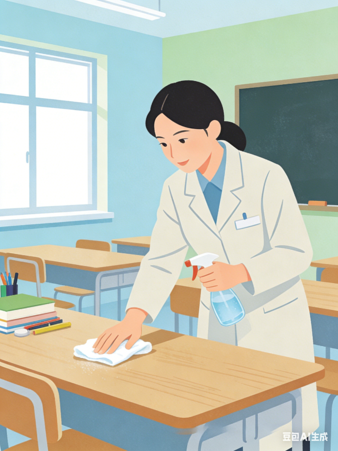 ◈ 加强消毒通风:定期清洁消毒教室、食堂等区域及高频接触部位,每日定时开窗通风。