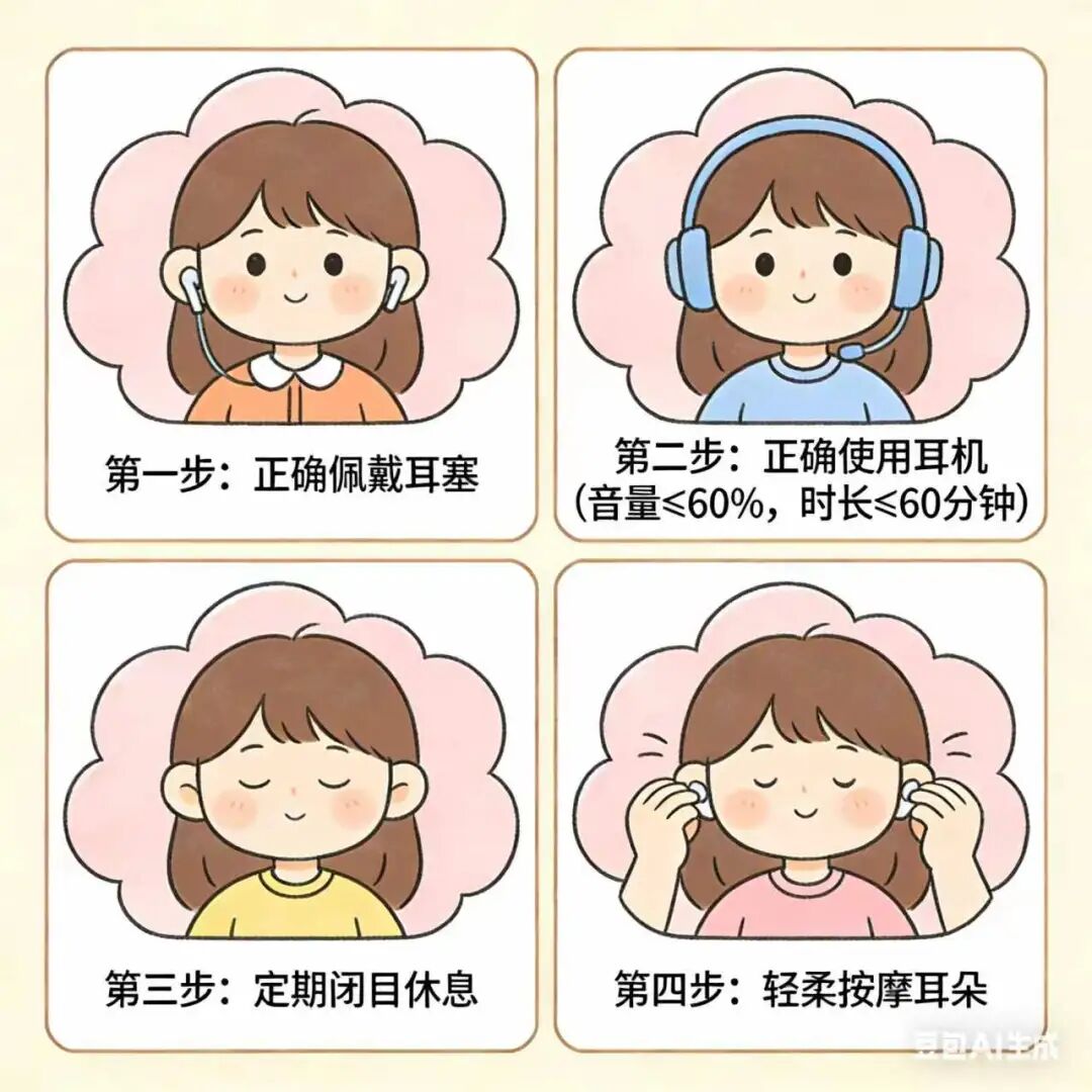 4.日常小养护:不随意掏耳朵,避免进水感染;少熬夜,闲暇时轻揉耳廓、闭目养神,缓解耳疲劳。