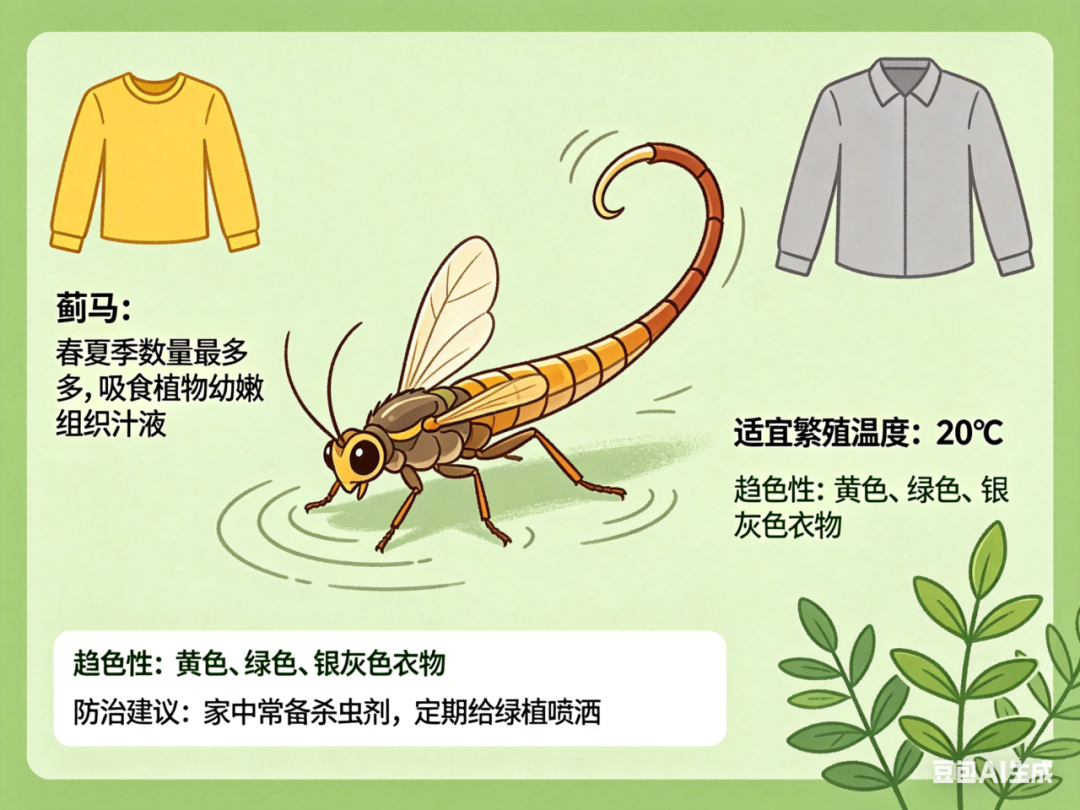 这种小飞虫名叫蓟马(jì mǎ),春夏季数量最多,靠吸食植物幼嫩组织汁液生存。