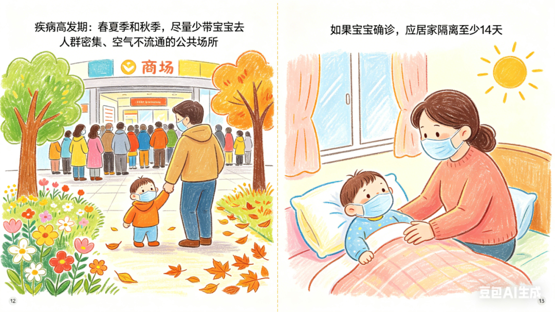 ◉ 疾病高发期(春夏季和秋季),尽量少带宝宝去人群密集、空气不流通的公共场所。