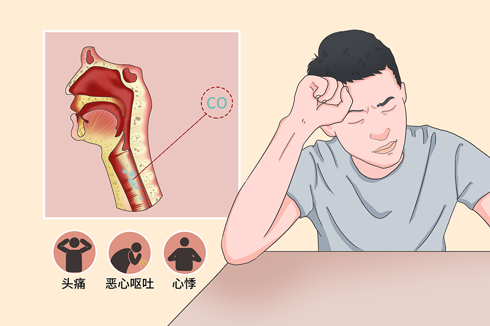 一氧化碳中毒后,症状通常表现为头痛、恶心、全身无力,严重程度与血液中碳氧血红蛋白(COHb)浓度相关。正常血液碳氧血红蛋白浓度为5-10%。
