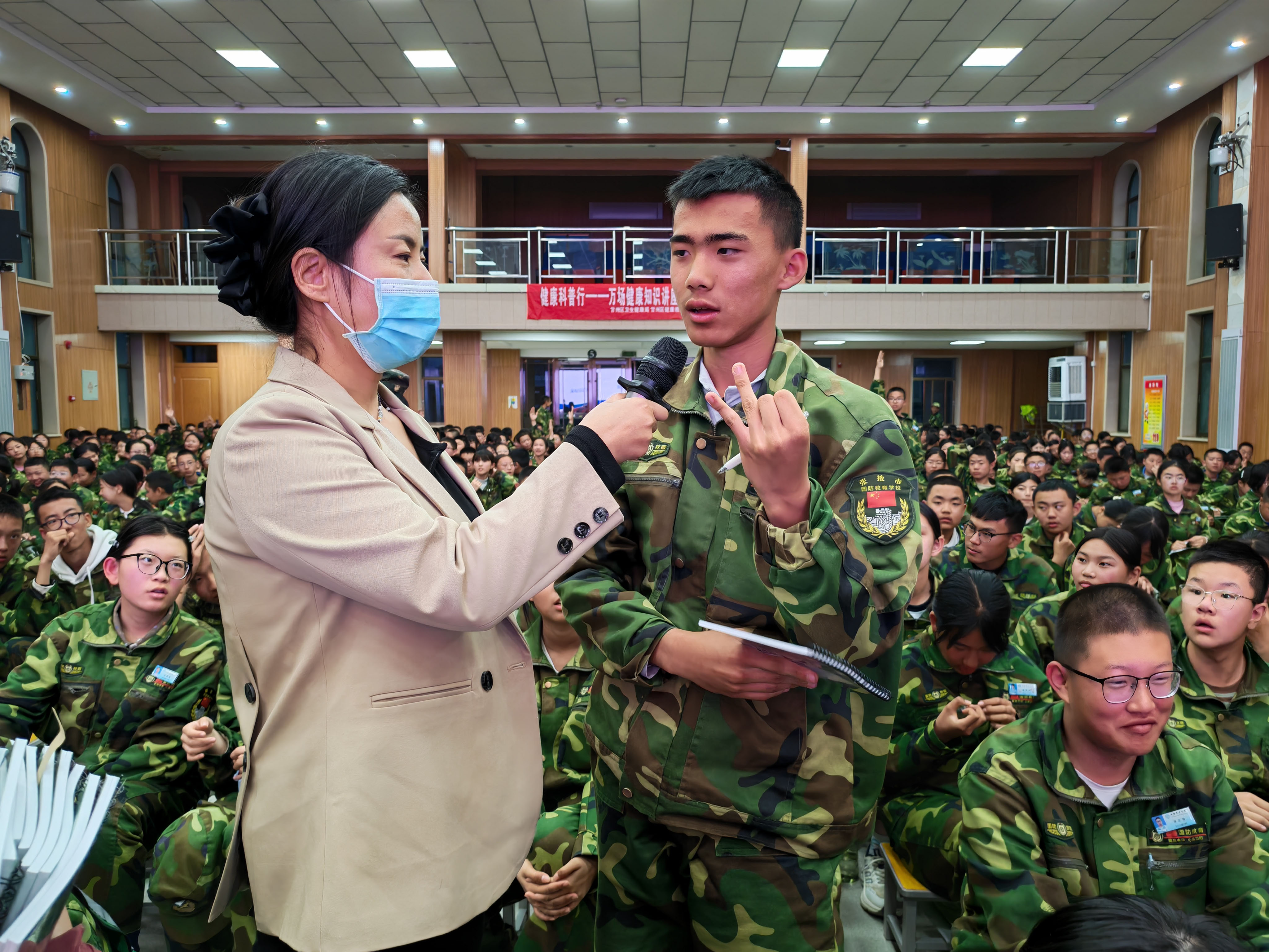 同学们眼中满是渴求知识的光芒,时不时举手咨询“如何正确洗手”、“口罩怎么戴才规范”、“是否可以选择自费HPV疫苗接种”等问题。面对同学们的疑问,疾控人员耐心细致、逐一解答,化解了大家的困惑,进一步加深了同学们对传染病防控知识的理解和记忆,让科学防控的理念深深扎根在每一位同学心中。