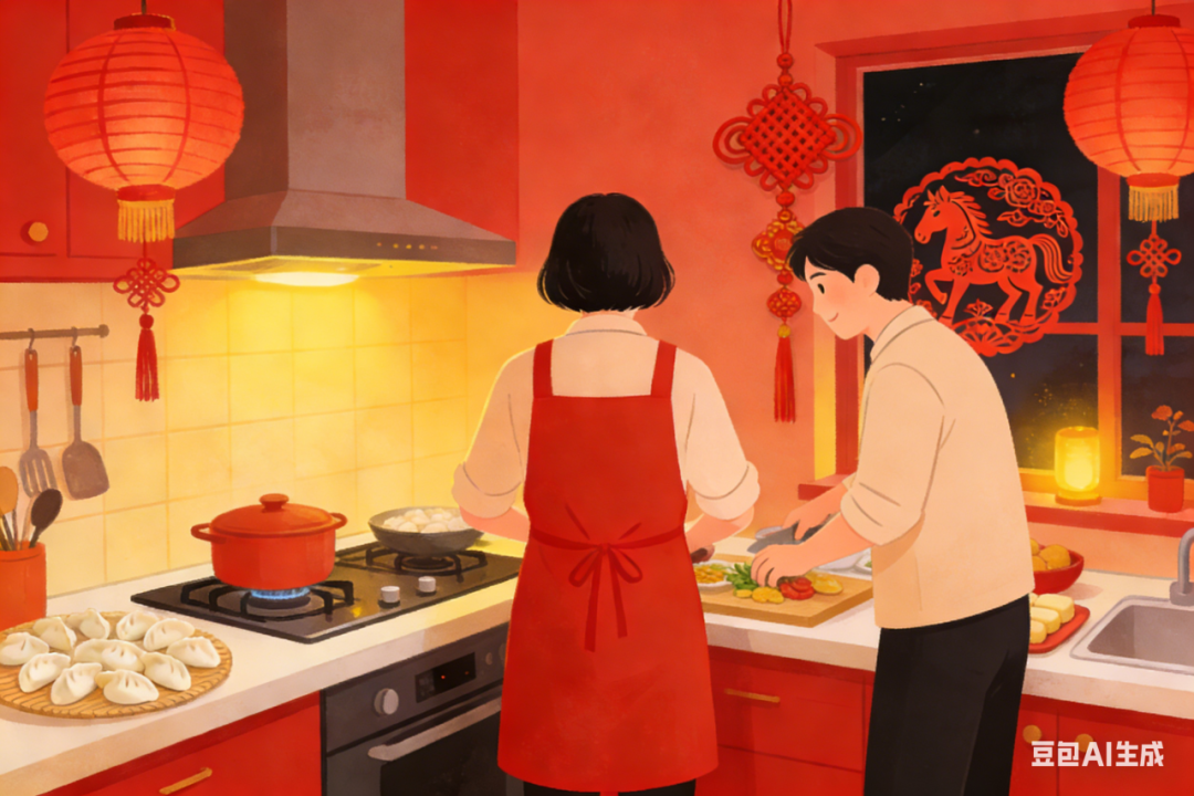 除夕夜团圆的餐桌永远是家里最热闹的角落,它承载着一家人团圆的欢乐以及对来年的期盼。但很少有人注意到,餐桌下总有一个 “缺席” 的身影:TA 可能刚把最后一道热菜端上桌,转身又钻进厨房清洗堆满水槽的碗碟;可能在大家举杯欢庆时,悄悄把孩子洒在地上的汤汁擦干净;可能在宴席过半时,默默添好每个人碗里的米饭,自己却没来得及吃上一口热饭。