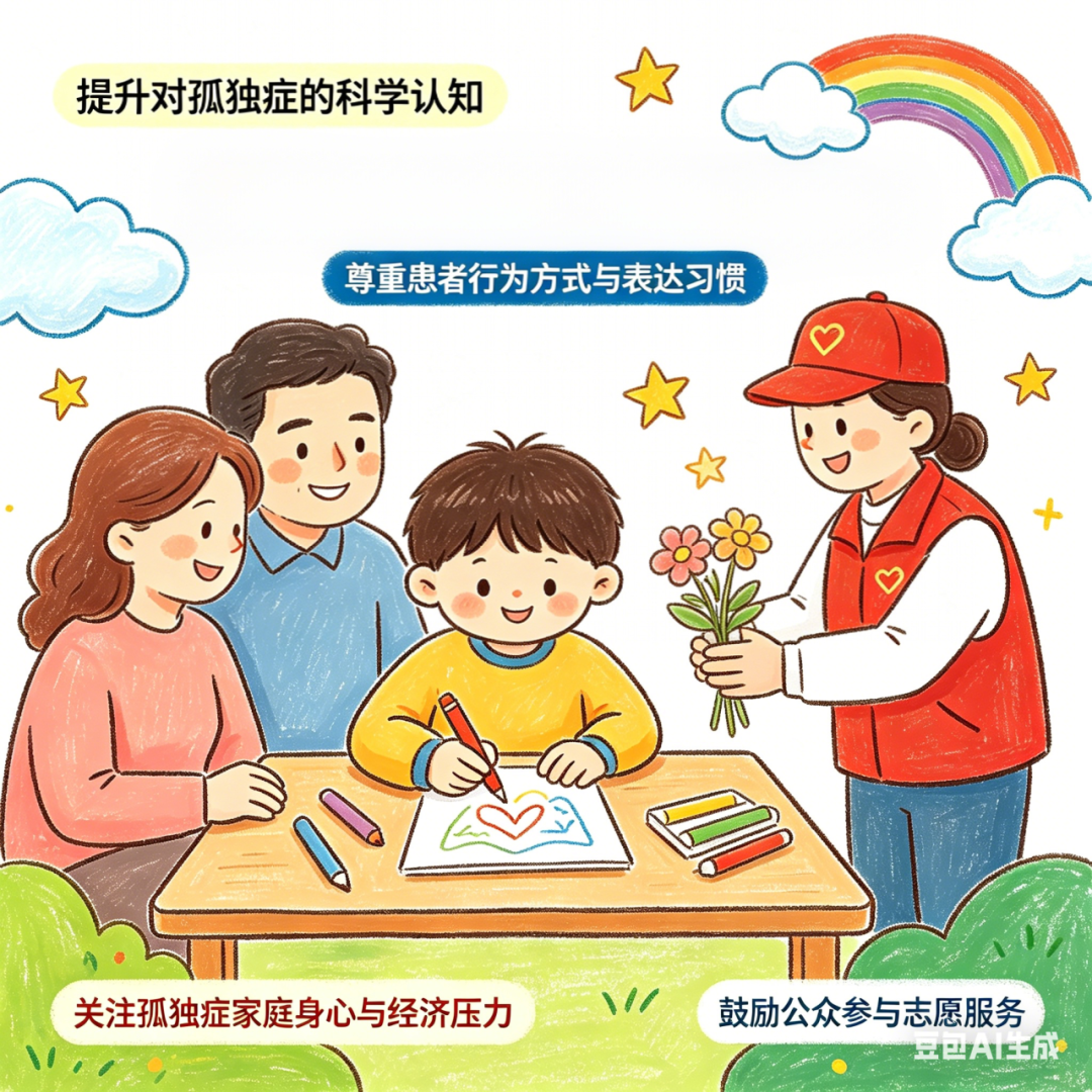 我们呼吁全社会提升对孤独症的科学认知,摒弃“性格问题”“智力低下”等误解,尊重患者的行为方式与表达习惯。关注孤独症家庭的身心与经济压力,鼓励公众参与志愿服务,传递温暖。友好包容的社会环境是孤独症患者融入社会的重要基础。让我们用心用情用力做好孤独症者全生涯服务,做实孤独症家庭支持,做强孤独症成年服务;共建共享平等、包容、友好的社会环境,让每一位孤独症者与所有人一样:生活有质量,人生有价值。