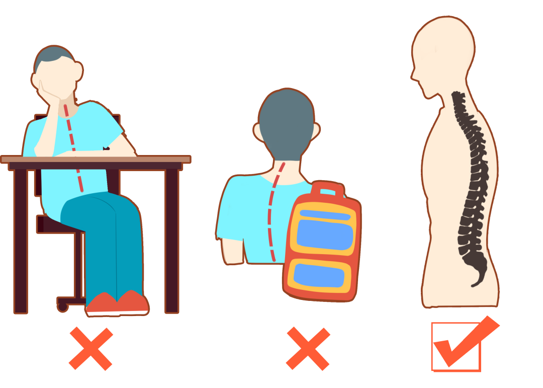 1.坐姿保持双脚平踩地面、背部贴椅背,胸口离桌一拳、眼睛离书一尺,不要躺着看书或使用电子产品,坚持科学用脊,养成良好习惯;