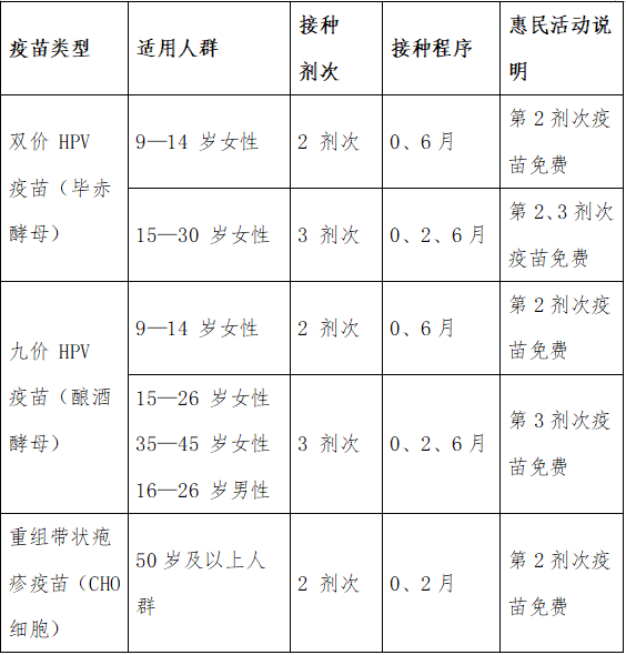 本次惠民活动实施对象为9-45岁未接种过HPV疫苗的人群以及50岁及以上未接种过带状疱疹疫苗的人群,有疫苗接种禁忌的人群不列入接种范围。已经实施HPV疫苗、带状疱疹疫苗减免政策的地区,原免费接种政策不变。